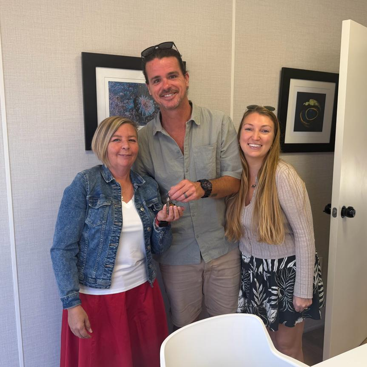 Des clients heureux le jour de la signature chez le notaire